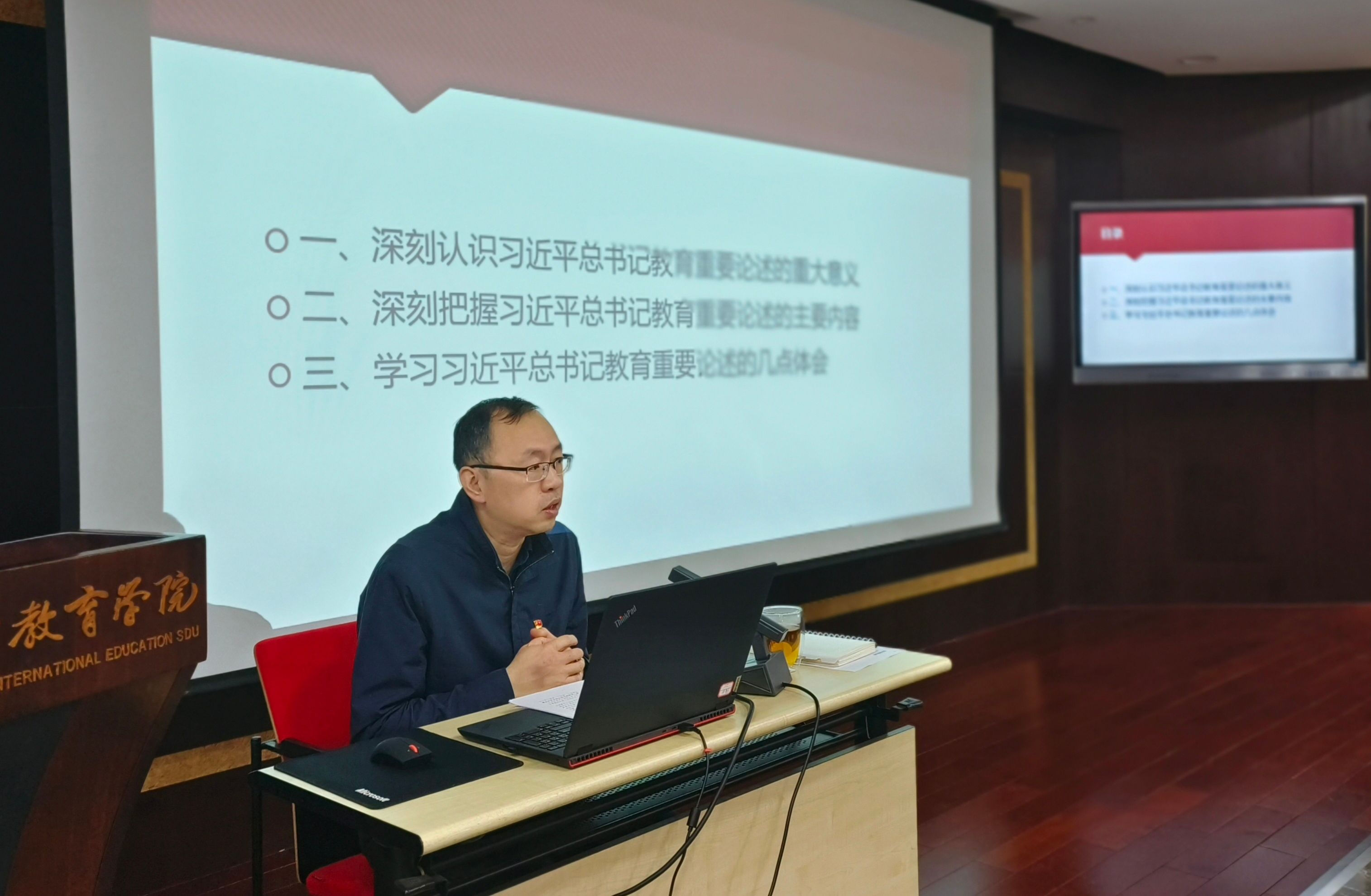12月6日下午,学院党委书记姬锐以“深入学习习近平总书记关于教育的重要论述”为主题,从重大意义、主要内容和体会三个方面开讲第一课,带领师生党员深入理解教育在国家发展和民族复兴中的战略地位和重要意义。