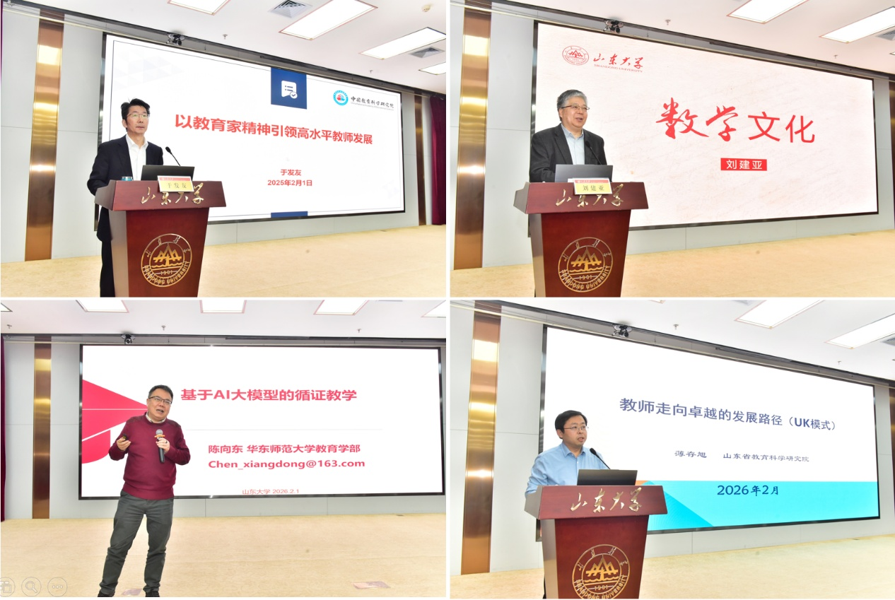 讲席教授刘建亚作《数学文化与素数的故事》分享,引导教师提升学科素养、树立科学精神;华东师范大学陈向东教授阐释《基于AI大模型的循证教学》,助力教师提升数智化教学素养;山东省教育科学研究院副院长薄存旭教授解析《卓越教师专业发展路径的UK模式》,拓展教师国际视野与专业发展路径。