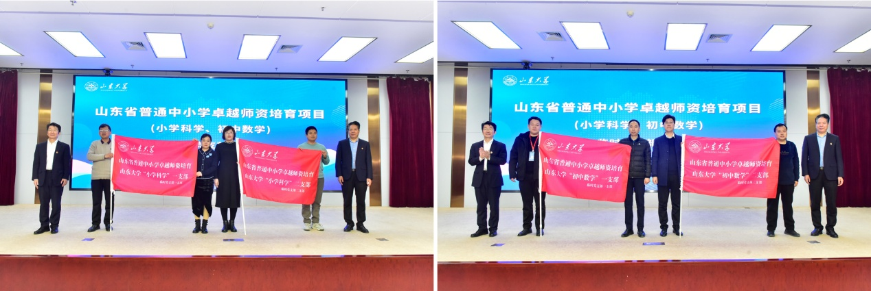 为强化组织引领、凝聚研修合力,开班仪式中专门设置了临时党支部授旗环节。于发友、曹现强为小学科学临时党支部和初中数学临时党支部授旗。临时党支部的建立,旨在发挥基层党组织的战斗堡垒作用,将党建工作深度融入研修全过程,为高质量完成培育任务提供坚强组织保障。