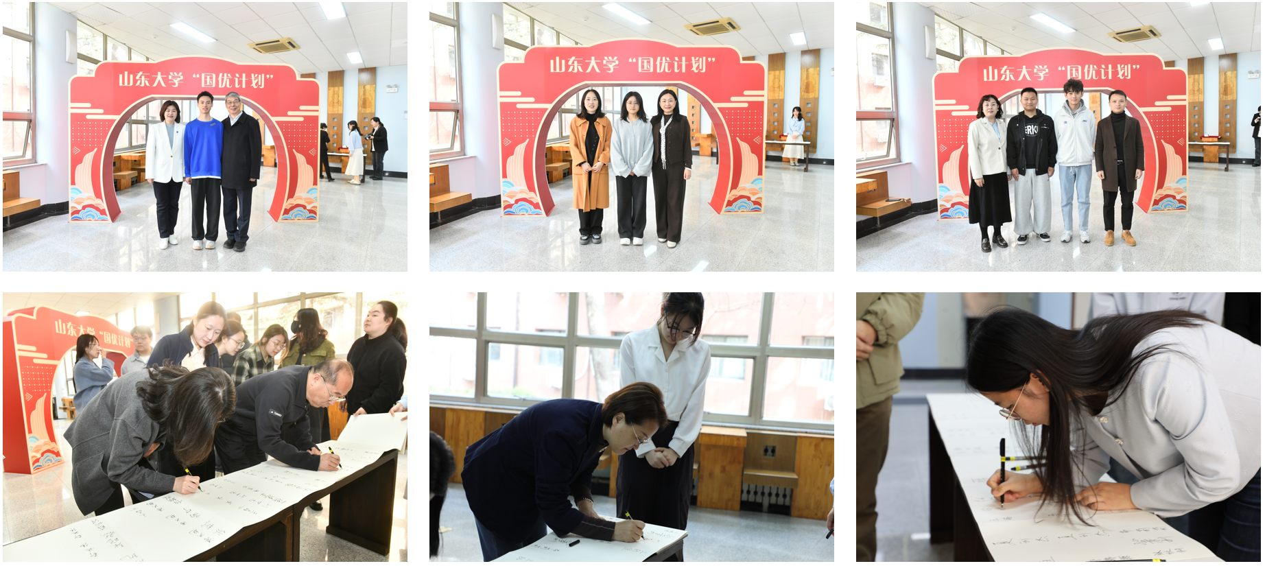 在分组交流环节,学生围绕教育见习、学业规划、课题研究等话题,与教育导师、实践导师进行了面对面深入交流,现场气氛热烈。活动期间,导师与学生团队还在报告厅外拍摄小组纪念照,并在长卷上签名留念,寓意在“国优计划”教育长卷上共同书写育人新篇。