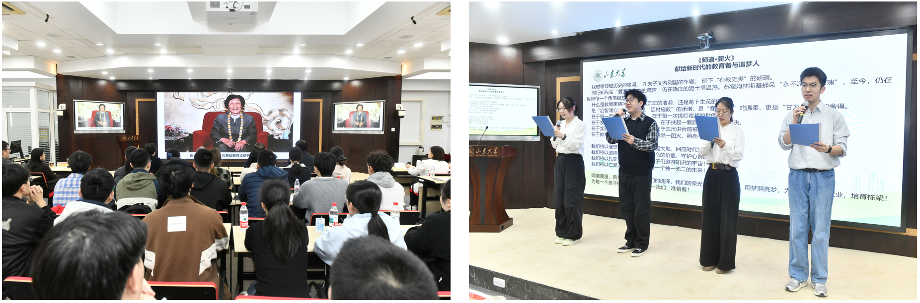 师生的寄语,感悟其“一辈子做教师,一辈子学做教师”的崇高精神。“国优计划”学子随后带来诗朗诵《师道·薪火》,以真挚情感表达对教育事业的坚定追求。