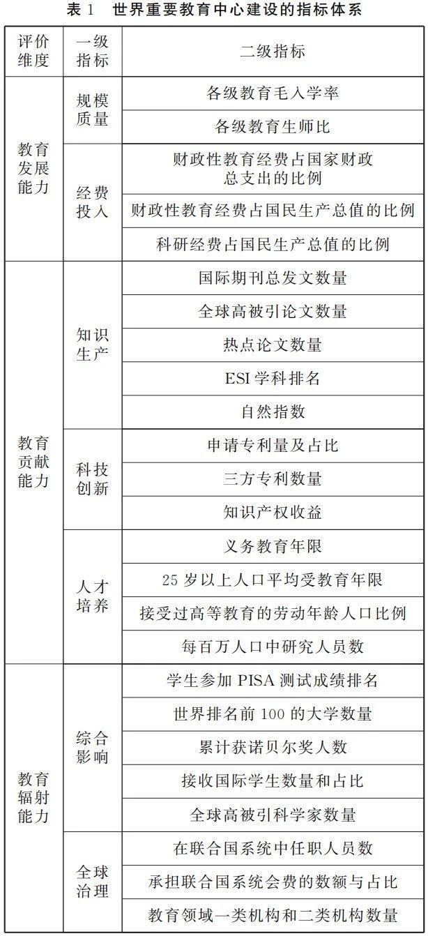 三、世界重要教育中心指标体系的构建