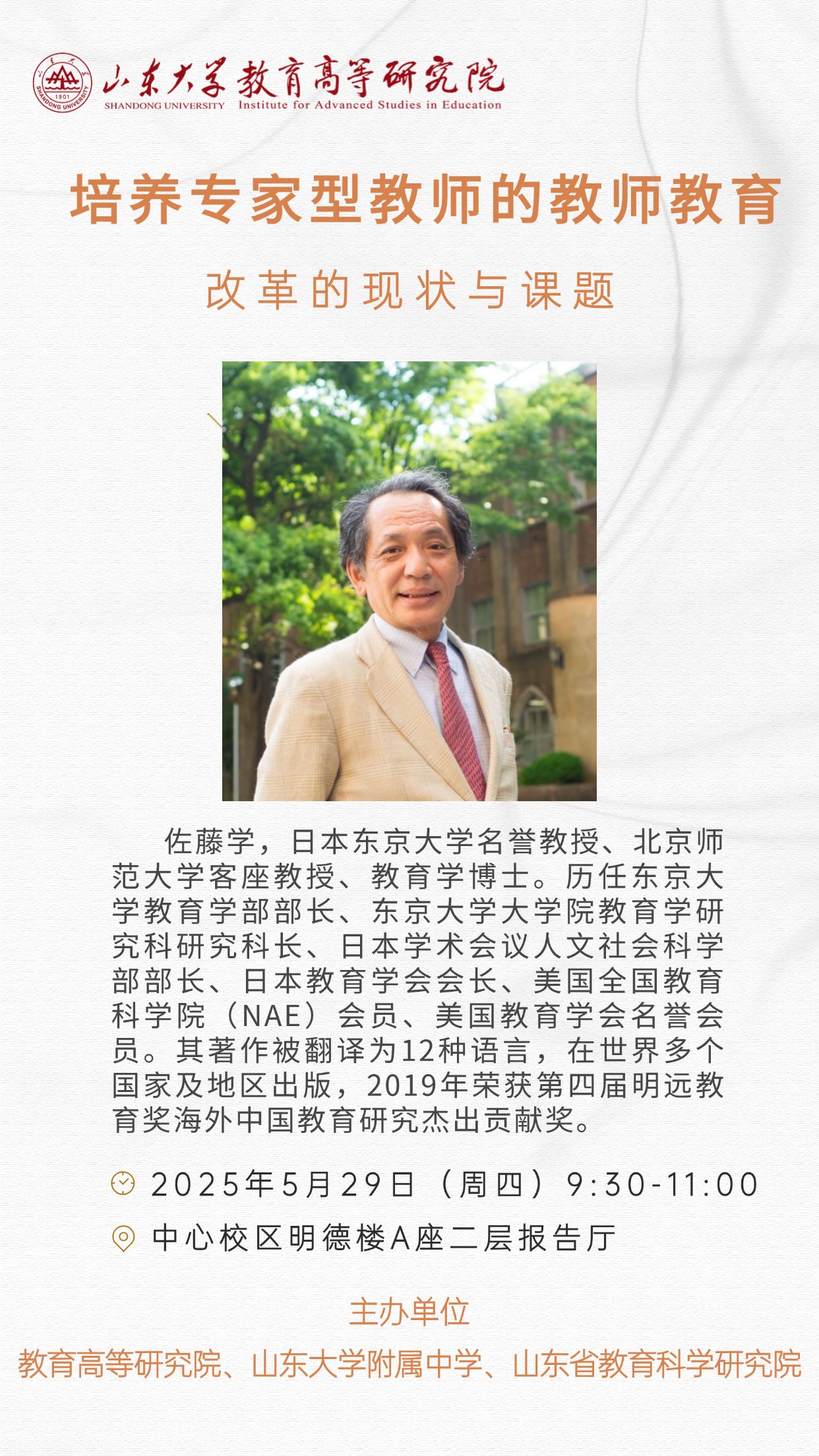 佐藤学,日本东京大学名誉教授、北京师范大学客座教授